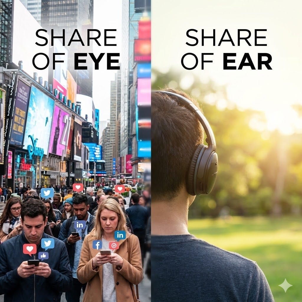 Why “Share of Ear” is the fast growing metric in a screen-saturated world.